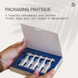 5 flapules with cap to ensure reuse until the end of the capacity. This is the ideal packaging to take the Magic Serum everywhere with you!