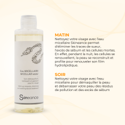 ✅ LE MATIN ☀️ : Nettoyez votre visage avec l’eau micellaire Skineance permet d'éliminer les traces de sueur, l'excès de sébum et les cellules mortes. En effet, pendant la nuit, les cellules se renouvellent, la peau se reconstruit et profite pour renouveler son film hydrolipidique.